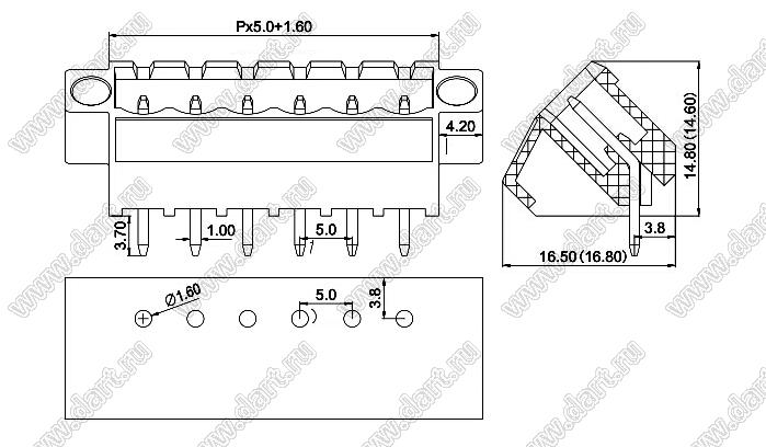 вилки однорядные угловые 45 град. на плату, с закладными гайками, шаг 5,0 мм