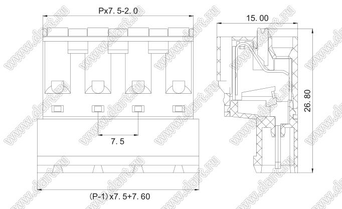 Каталог > Электронные компоненты, радиодетали > Клеммники (колодки клеммные) > Клеммники разъемные > Разъемные клеммники шаг 7,5 мм > KF2EDGKDR-7.5 серия