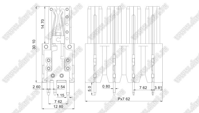 розетки прямые на плату, шаг 7,62 мм