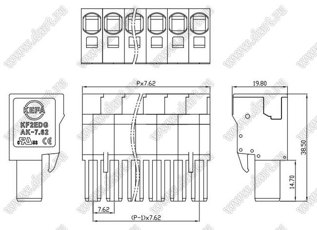 Каталог > Электронные компоненты, радиодетали > Клеммники (колодки клеммные) > Клеммники разъемные > Разъемные клеммники шаг 7,62 мм > KF2EDGAK-7.62 серия