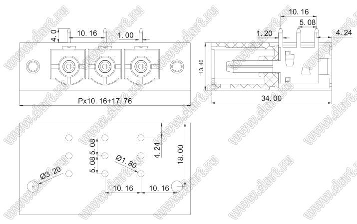 вилки на плату угловые, с отверстиями под крепежные винты и закладные гайки, шаг 10,16 мм