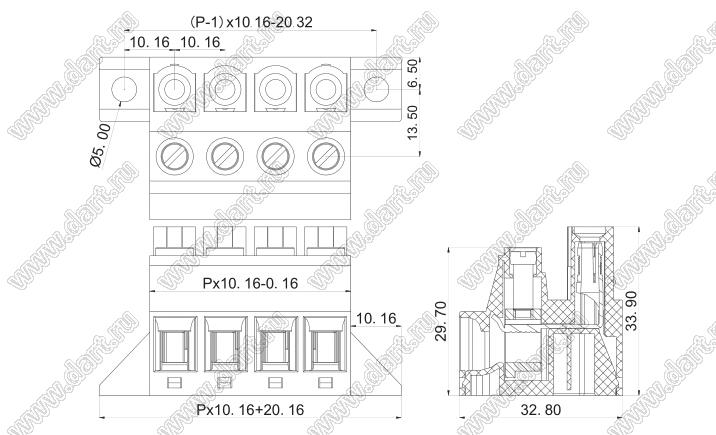 розетки на провод с отверстиями под крепежные винты, шаг 10,16 мм