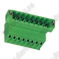 вилка однорядная на провод с прямыми входами проводов под пружинные зажимы, с закладными гайками; шаг=5,08мм; I max=10А; U=300В; шаг=5,08мм; I max=10/15А (UL/ICT); U=300/300В (UL/ICT); 8-конт.