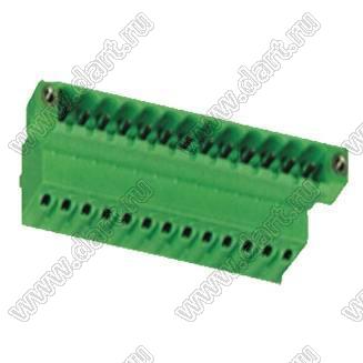 вилка однорядная на провод с прямыми входами проводов под пружинные зажимы, с закладными гайками; шаг=5,08мм; I max=10А; U=300В; шаг=5,08мм; I max=10/15А (UL/ICT); U=300/300В (UL/ICT); 13-конт.