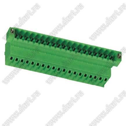 вилка однорядная на провод с прямыми входами проводов под пружинные зажимы, с закладными гайками; шаг=5,08мм; I max=10А; U=300В; шаг=5,08мм; I max=10/15А (UL/ICT); U=300/300В (UL/ICT); 19-конт.