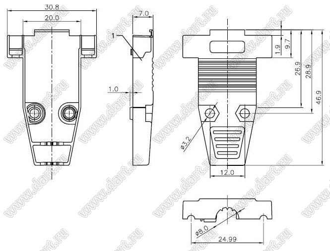 Каталог > Электронные компоненты, радиодетали > Разъёмы (соединители, переходники) > Разъемы D-SUB > Корпуса (кожухи) для разъемов D-SUB > DS1047-09M1L (DNT-9C)