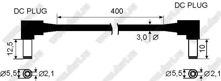 кабель переходник вторичного питания; угловые штекеры 2,1x5,5x12 и 2,1x5,5x10мм; длина 0,4м