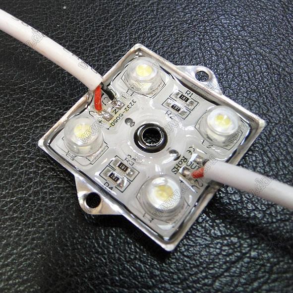 модуль светодиодный герметичный с линзами на металлической основе; 12В (DC); холодный белый; 4 шт. SMD5050; IP65; 45x36x9мм