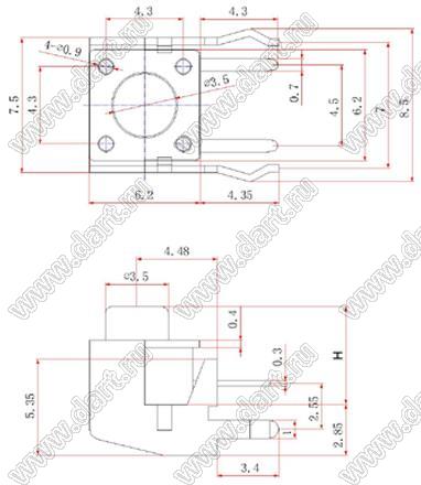 Каталог > Электронные компоненты, радиодетали > Переключатели, кнопки > Переключатели тактовые (TACT, тактовые кнопки) > Тактовые кнопки угловые для монтажа в отверстия платы > TSZJ6643