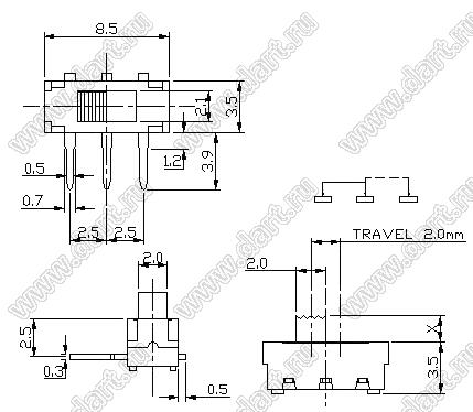 Каталог > Электронные компоненты, радиодетали > Переключатели, кнопки > Переключатели движковые (SLIDE) > Миниатюрные > MK-12D13G2 (MSS-22D19-2H)