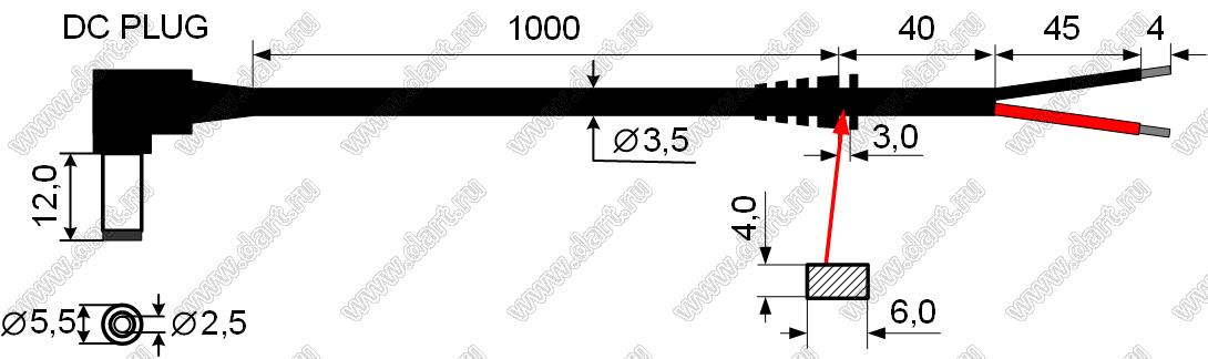 Каталог > Провода, шнуры, кабели > Кабели, жгуты, провода > Кабели питания > Кабели вторичного питания > DC CABLE L=1000mm with angle plug 5,5x2,5x12,5