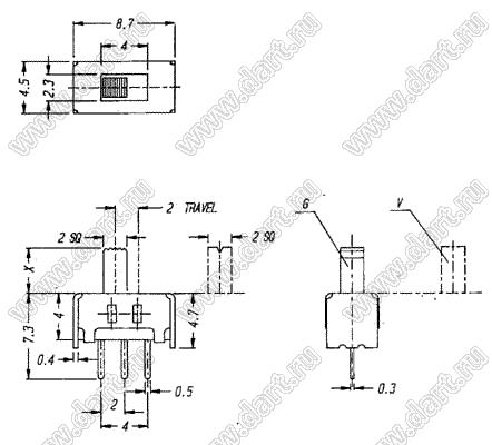 Каталог > Электронные компоненты, радиодетали > Переключатели, кнопки > Переключатели движковые (SLIDE) > Переключатели движковые (SLIDE) прямые > SS-12D09-G4