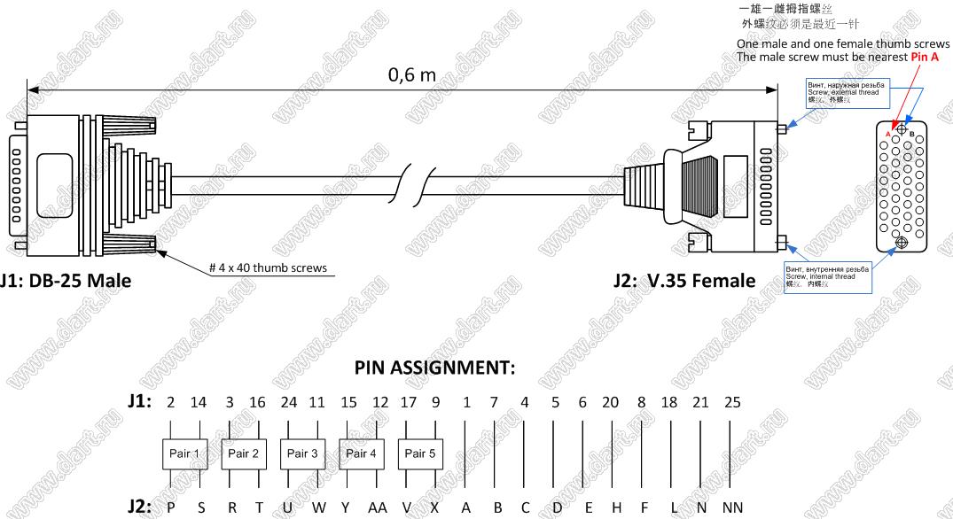 Каталог > Провода, шнуры, кабели > Кабели, жгуты, провода > Кабели информационные > MRAC-34F(V.35)-600mm-DB-25M