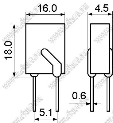 Предохранитель самовосстанавливающийся; VAC max.=250В; IH=600мА; IT=1200мА