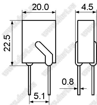 Предохранитель самовосстанавливающийся; VAC max.=250В; IH=800мА; IT=1600мА