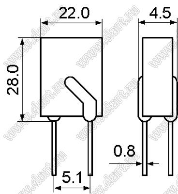 Предохранитель самовосстанавливающийся; VAC max.=250В; IH=1200мА; IT=2400мА
