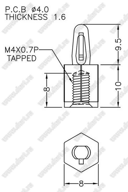 Каталог > Фурнитура для электронных устройств > Фиксаторы плат, стойки межплатные > Фиксаторы под круглое отверстие > Фиксаторы с защелкой в плату > BSCB4 серия > BSCB4-10