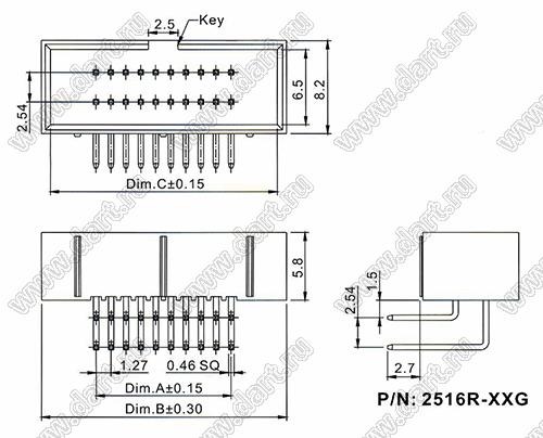 Каталог > Электронные компоненты, радиодетали > Разъёмы (соединители, переходники) > Разъемы IDC для плоского кабеля (шлейфа) > 1,27 x 2,54 > 2516R-XXX (BH1.27x2.54R-XX) серия > 2516R-034 (BH1.27x2.54R-34)