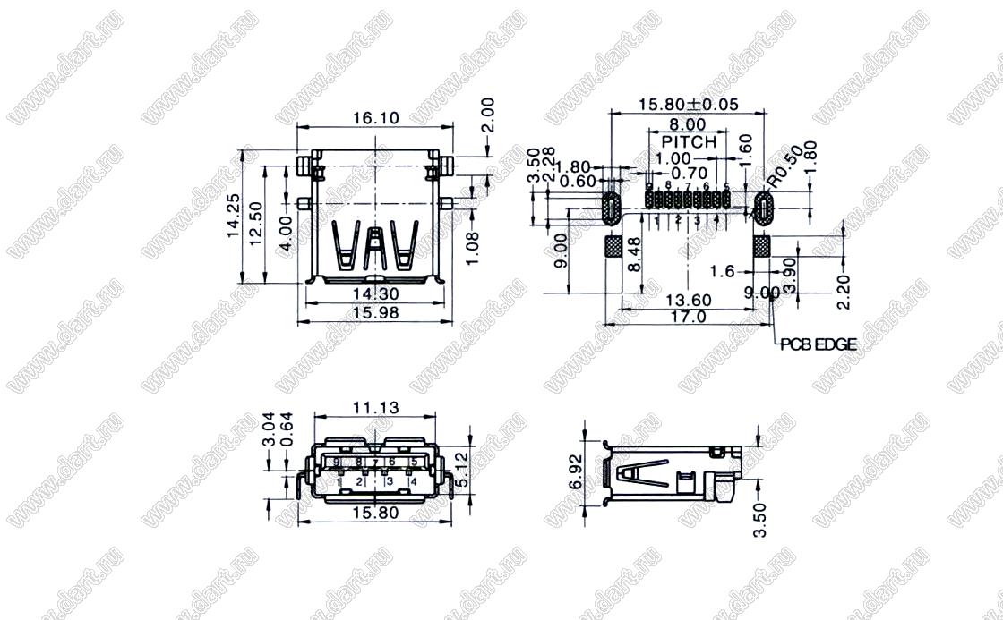 Каталог > Электронные компоненты, радиодетали > Разъёмы (соединители, переходники) > Разъемы USB > Разъемы USB-A > Разъемы USB 2.0 тип A > US10-096