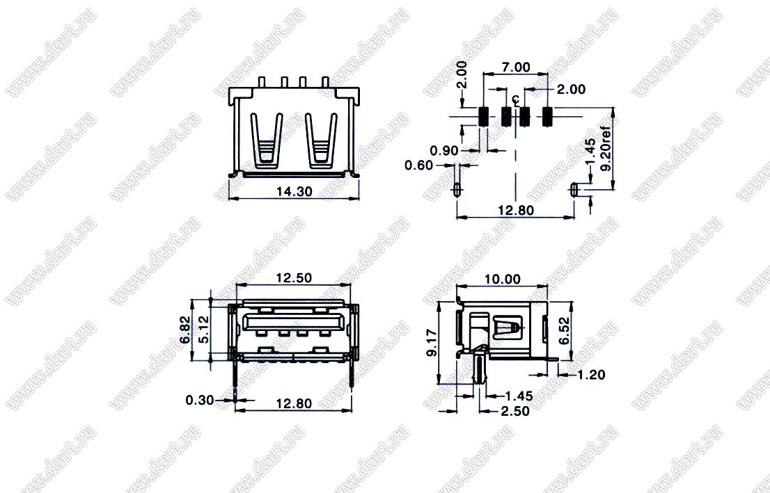 Каталог > Электронные компоненты, радиодетали > Разъёмы (соединители, переходники) > Разъемы USB > Разъемы USB-A > Разъемы USB 2.0 тип A > US01-003