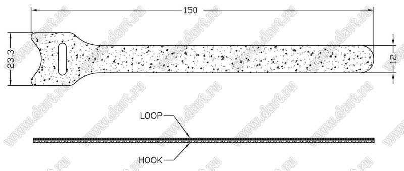 Стяжка кабельная с липучкой Velcro; L=150мм; нейлон; черный