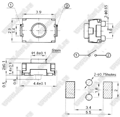 Каталог > Электронные компоненты, радиодетали > Переключатели, кнопки > Переключатели тактовые (TACT, тактовые кнопки) > Тактовые кнопки SMD (для поверхностного монтажа) > 2,9x3,9 мм > TVAU07 серия > TVAU07-2.0
