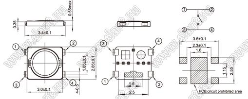 Каталог > Электронные компоненты, радиодетали > Переключатели, кнопки > Переключатели тактовые (TACT, тактовые кнопки) > Тактовые кнопки SMD (для поверхностного монтажа) > 2,7x3,0 мм > TVAU19 > TVAU19-N