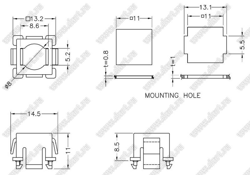 Каталог > Фурнитура для электронных устройств > Толкатели (колпачки) для нажимных и тактовых переключателей > TSC серия > TSC-7T