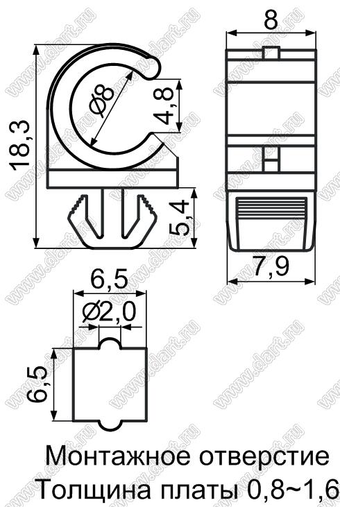 Каталог > Фурнитура для электронных устройств > Крепеж проводов и кабелей > Зажимы проводов с фиксацией в панель на защелках > CH серия > CH-9