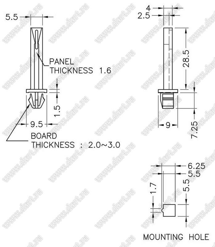 направляющая платы; нейлон-66 (UL); натуральный