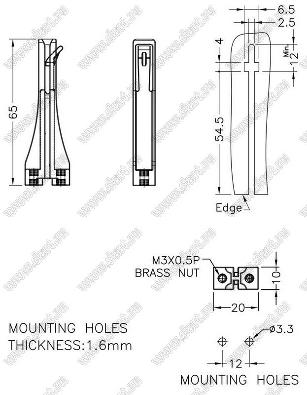 направляющая платы; поликарбонат PC + пластик ABS (UL); голубой