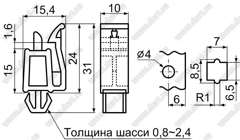 Каталог > Фурнитура для электронных устройств > Фиксаторы плат, стойки межплатные > Фиксаторы под фигурное отверстие в шасси > Прочее > KES-15