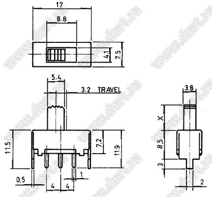 Каталог > Электронные компоненты, радиодетали > Переключатели, кнопки > Переключатели движковые (SLIDE) > Переключатели движковые (SLIDE) прямые > SS-12F02-G4