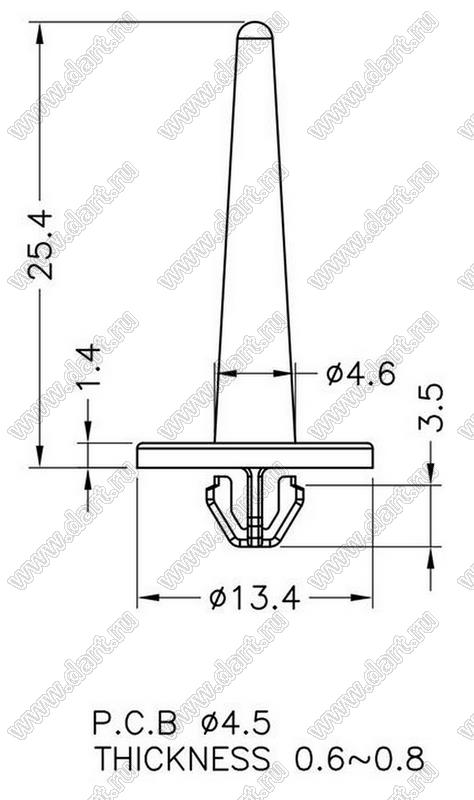 Каталог > Фурнитура для электронных устройств > Фиксаторы плат, стойки межплатные > Фиксаторы под круглое отверстие > Фиксаторы с защелкой в плату > MCF серия > MCFC-2508