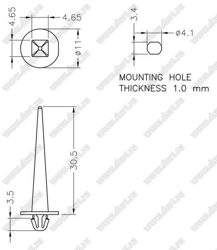 Каталог > Фурнитура для электронных устройств > Фиксаторы плат, стойки межплатные > Фиксаторы под круглое отверстие > Фиксаторы с защелкой в плату > MCF серия > MCFG-3010