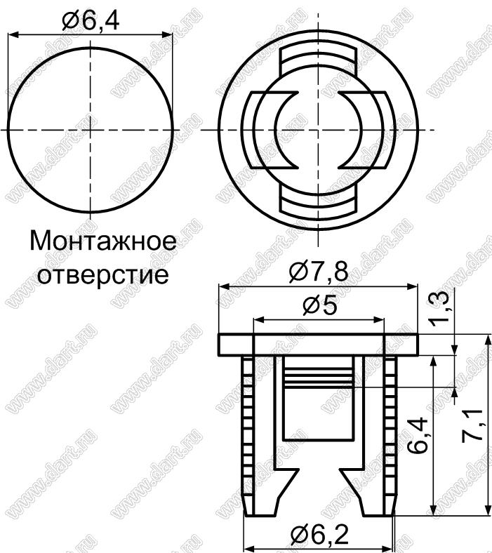 Каталог > Фурнитура для электронных устройств > Держатели и изоляторы компонентов > Держатели светодиодов > Держатели светодиодов на панель > LED5 серия > LED5-1S