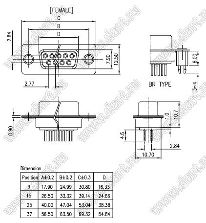 Каталог > Электронные компоненты, радиодетали > Разъёмы (соединители, переходники) > Разъемы D-SUB > DS1034-xxX (5502-xxX, DP-xxX) серия: вилки и розетки D-SUB прямые для пайки в плату > DS1034-09F-BR (5502-09S-BR, DP-09F)