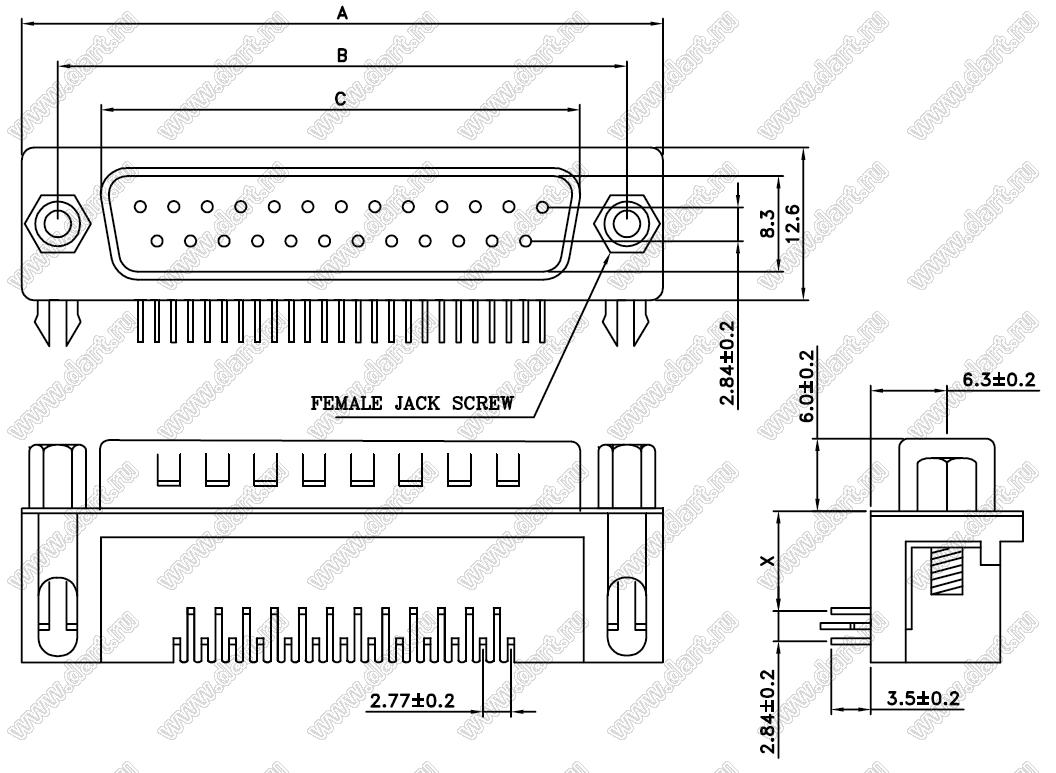 Каталог > Электронные компоненты, радиодетали > Разъёмы (соединители, переходники) > Разъемы D-SUB > DS1037-xxX (5504-xxX, DRB-xxX) серия: вилки и розетки D-SUB угловые для пайки в плату > DS1037-1-09M-A (5504-09P-B, DRB-09MB)