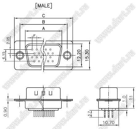 Каталог > Электронные компоненты, радиодетали > Разъёмы (соединители, переходники) > Разъемы D-SUB > DS1077-xxX (5512-xxX, DHB-xxX) серия: вилки и розетки D-SUB прямые "высокой плотности" для пайки в плату > DS1077-78MU0N-4 (5512-78PA-01-BRJ-BU, DHB-78M)