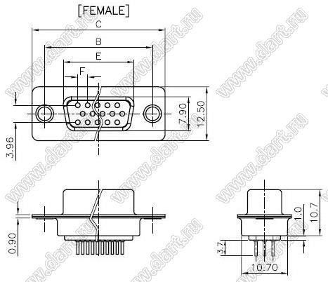 Каталог > Электронные компоненты, радиодетали > Разъёмы (соединители, переходники) > Разъемы D-SUB > DS1077-xxX (5512-xxX, DHB-xxX) серия: вилки и розетки D-SUB прямые "высокой плотности" для пайки в плату > DS1077-26FU0N-4 (5512-26SA-01-BRJ-BU, DHB-26F)