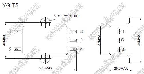 Каталог > Электронные компоненты, радиодетали > Устройства защиты (предохранители, разрядники, фильтры помехоподавляющие) > Однофазные фильтры от помех > YG10T5