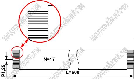 Каталог > Провода, шнуры, кабели > Кабели, жгуты, провода > Шлейфы плоские сверхтонкие (FPC/FFC/BLFPC) > AWM шаг 1,25 мм (шлейфы плоские сверхтонкие) > BLFPC P1,25 17PIN 600mm