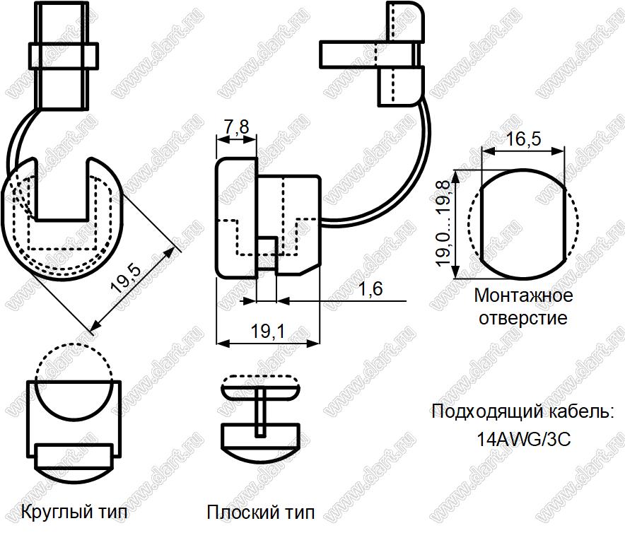 Размер кабеля сечение кабеля: 14AWG/3C