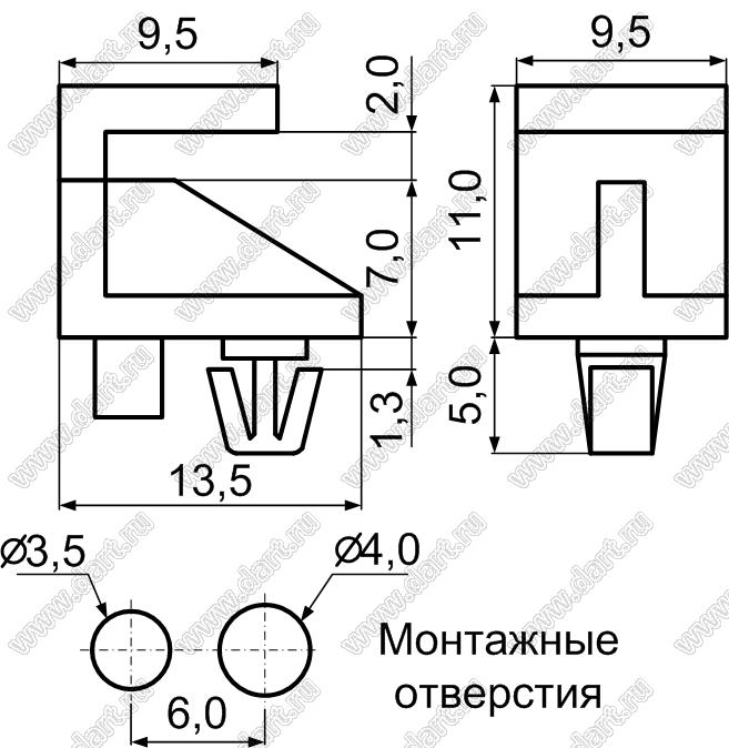 Фиксатор платы краевой с защелкой; нейлон-66 (UL); натуральный