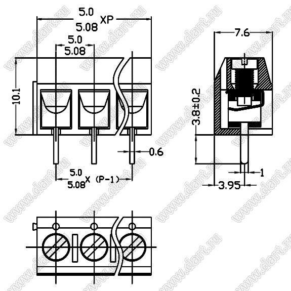 Каталог > Электронные компоненты, радиодетали > Клеммники (колодки клеммные) > Клеммники винтовые для монтажа в отверстия печатных плат > Винтовые клеммники (шаг 5,0 мм) > KF306-5.0 (DG306-5.0) серия > KF306-5.0-03P-12