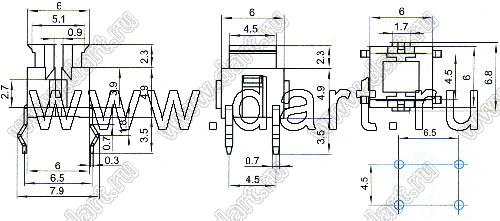 Каталог > Электронные компоненты, радиодетали > Переключатели, кнопки > Переключатели тактовые (TACT, тактовые кнопки) > Тактовые кнопки прямые для монтажа в отверстия платы > 6,0x6,0 мм > TSD6801B (TP614L-3)