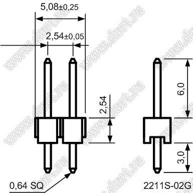 Каталог > Электронные компоненты, радиодетали > Разъёмы (соединители, переходники) > Разъемы плата-плата (межплатные) > шаг 2,54 мм (разъемы межплатные штыревые и гнезда для них) > однорядные > 2211S-XXG-XXXX (PLS-XX) серия > 2211S-02G (PLS-02)