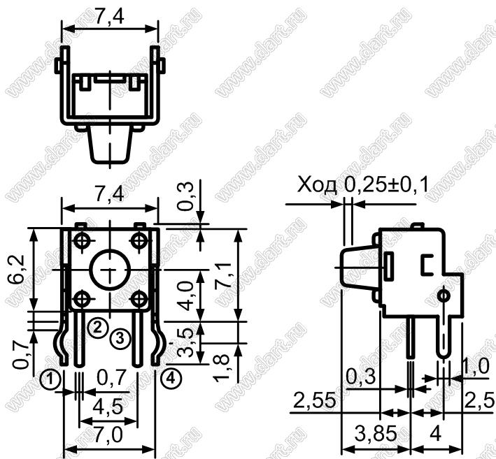 Каталог > Электронные компоненты, радиодетали > Переключатели, кнопки > Переключатели тактовые (TACT, тактовые кнопки) > Тактовые кнопки угловые для монтажа в отверстия платы > TC-0203-X (0750, KFC-A06-06A-5H)
