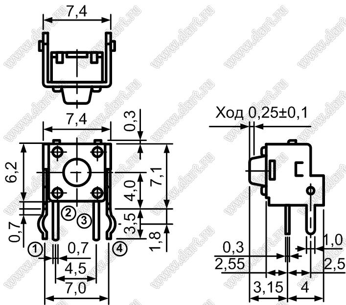 Каталог > Электронные компоненты, радиодетали > Переключатели, кнопки > Переключатели тактовые (TACT, тактовые кнопки) > Тактовые кнопки угловые для монтажа в отверстия платы > TC-0202-X (0743, TS-A1PV-130, KFC-A06-06A-4.3)