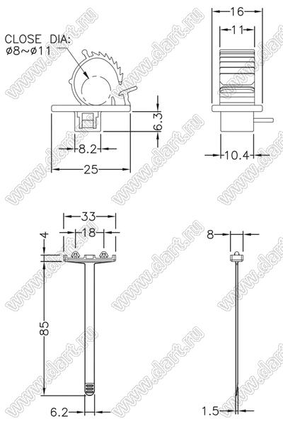 Каталог > Фурнитура для электронных устройств > Крепеж проводов и кабелей > Зажимы проводов с фиксацией в панель на защелках > SWPL серия > SWPL-46